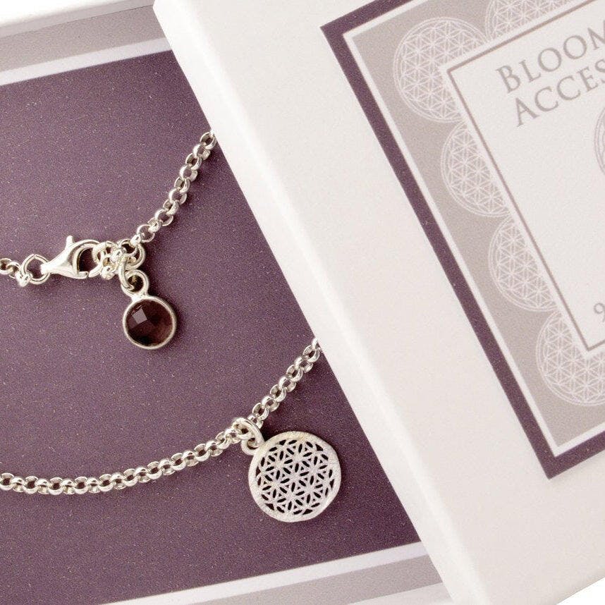 ♡ Zauberhaftes 925 Sterling Silber Armkettchen mit der "Blume des Lebens" mit Edelstein-Anhänger für eine harmonische und glückliche Zukunft.