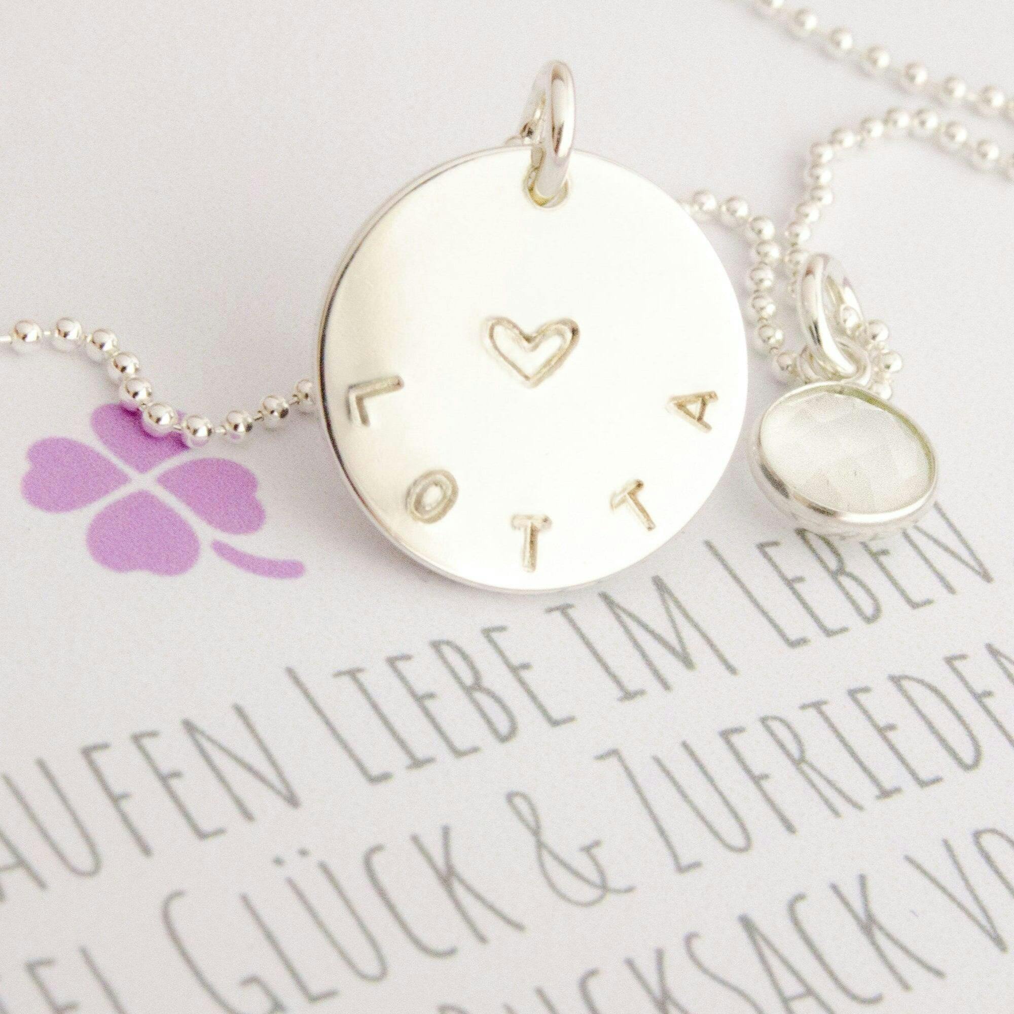 ♡ Wunderschöne, zarte 925 Sterling Silber Kette mit von Hand gestempeltem Namens-Anhänger und Halbedelstein nach Wunsch.