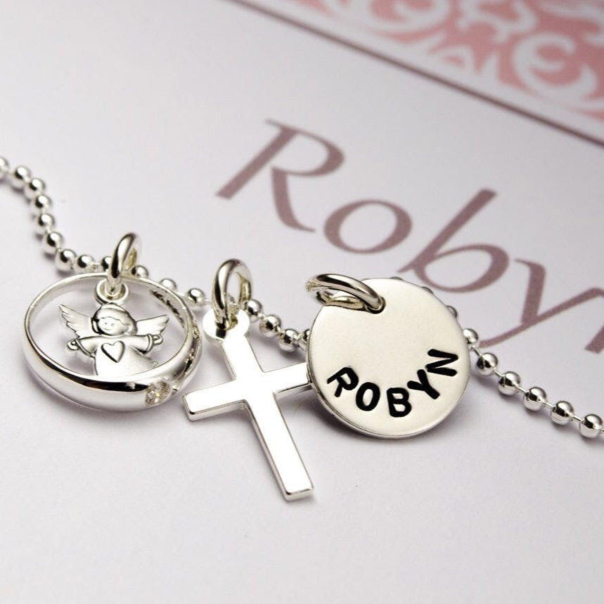 Taufkette ROBYN mit Name Engel Taufring Kreuz 925 Silber